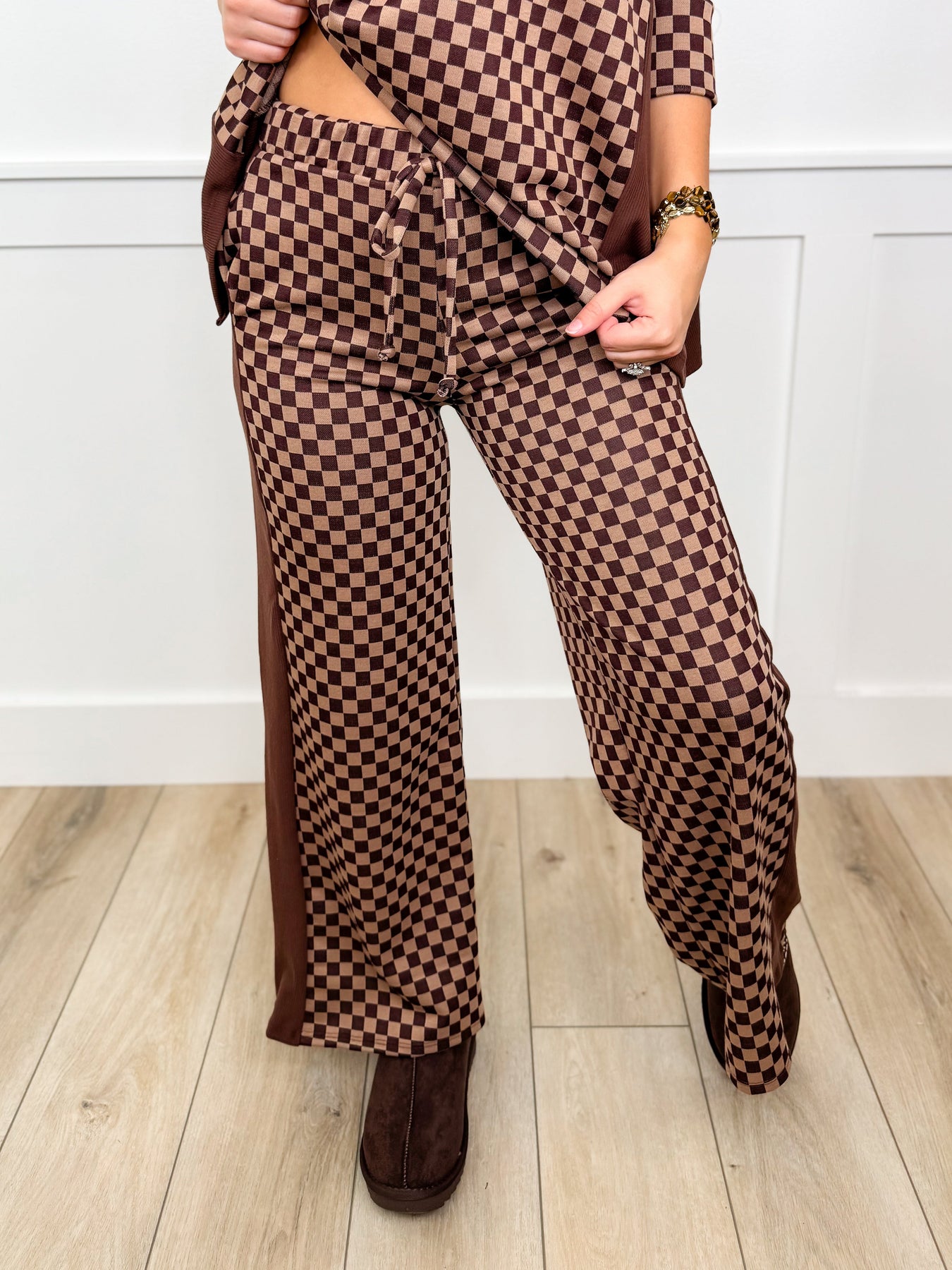 Slip into the Most Intriguing High Rise Knit Wide Leg Avery Mae Bottoms and let their playful checkerboard pattern turn heads. Featuring solid ribbed panels for a touch of texture and a non-functional drawstring that adds charm without the fuss, these bottoms effortlessly blend style and comfort. Perfect for lounging or stepping out with confidence in three vibrant colors!