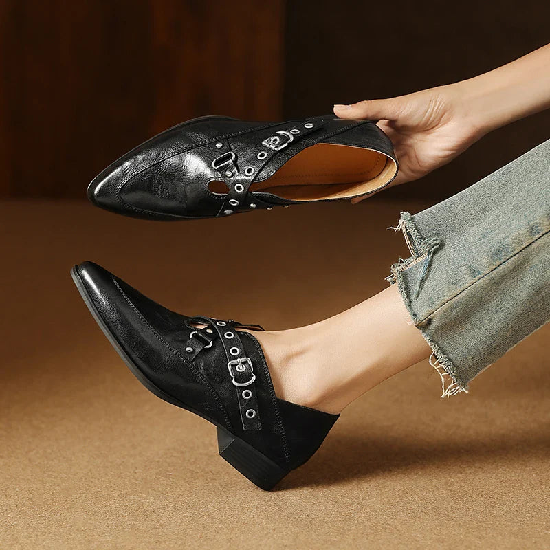 The silhouette? Precise. The strap? Intentional. The finish? Unmistakably sophisticated. Genuine leather construction with a padded footbed and stable block heel makes this a reliable choice for long hours and polished transitions.